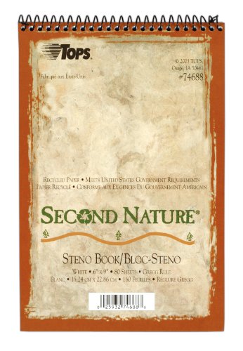 Since 1952, TOPS has provided quality products and services to businesses throughout the world. TOPS continues that commitment providing innovative, high quality value-added products for the office, school and home. TOPS Second Nature pads and notebooks are designed for ecologically concerned people who want to complete the recycle circle. Second Nature notebooks are 100% recycled, 40% post-consumer waste pads. These steno notebooks are constructed of quality recycled materials. With 80-pages, the TOPS steno notebook measures 6 x 9 inches and features Gregg ruling for easy note-taking. Whether it's notebooks, writing pads, record books, time cards, or any of the hundreds of items we offer, you can count on TOPS products to help.